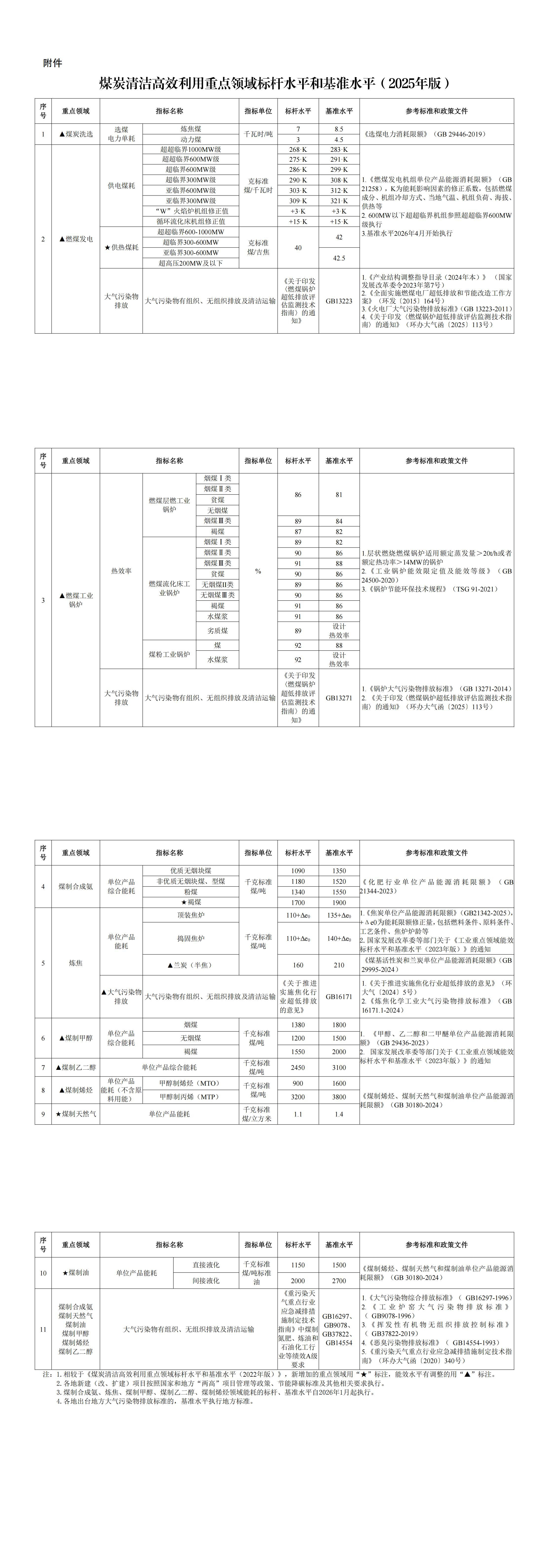 國(guó)家發(fā)展改革委等部門關(guān)于發(fā)布《煤炭清潔高效利用重點(diǎn)領(lǐng)域標(biāo)桿水平和基準(zhǔn)水平(2025年版)》的通知
