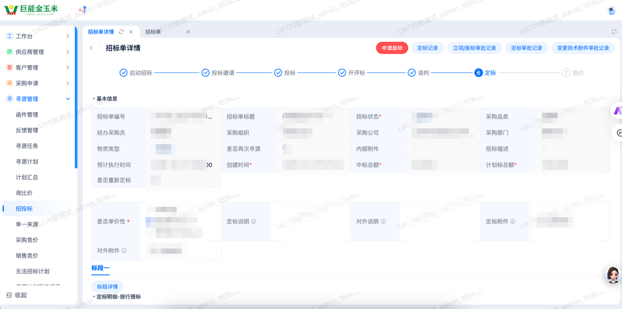 系統“尋源管理-招投標”頁面